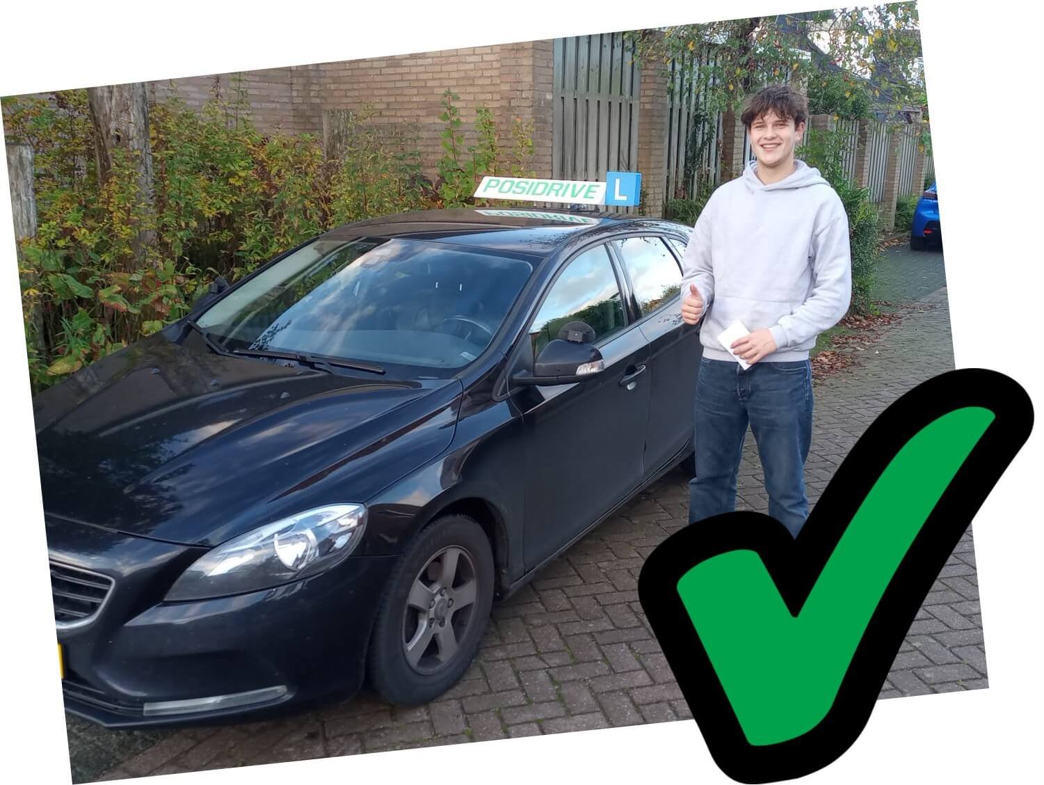 Gefeliciteerd Thijs, in één keer geslaagd voor je rijexamen. Heel goed gedaan. Je deed wat je moest doen en heb een leuk rondje gereden. Heel veel plezier ermee en veel veilige kilometers. Ook heel veel succes met je opleiding en op je werk.